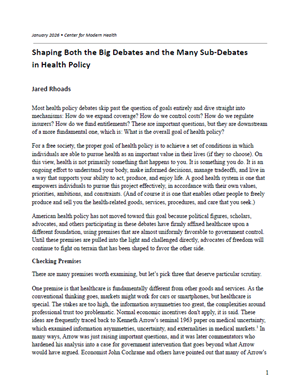 Shaping Both the Big Debates and the Many Sub-Debates in Health Policy